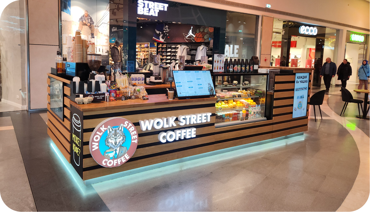 На стадии открытия мы подбираем партнёру наиболее рентабельный формат работы. Таким образом можно открыть классическую кофейню, а можно с хот догами, вафлями, бургерами.